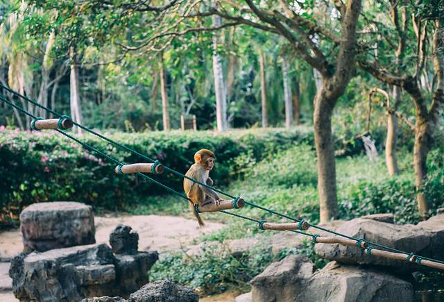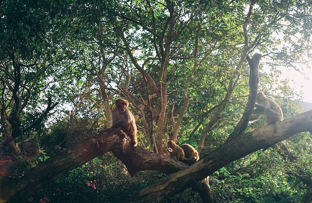 这里的猴子没有峨眉山的那么野蛮,一般不会抢手机、相机等电子产品,但是如果你去掏包的话可能它们会误以为有吃的,而跳过来抢。