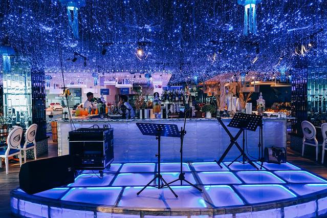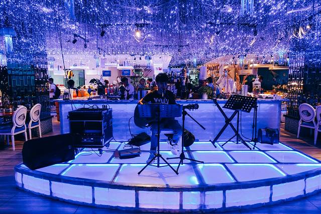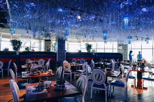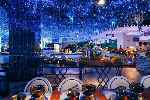 来三亚旅游必不可少的就是吃海鲜,而最过瘾的非海鲜自助莫属了。这次打卡的是大悦洋海鲜自助餐厅,蓝色海洋主题,水母灯光装饰不断变幻颜色。