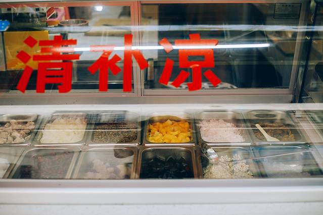 这里的进门处就是清补凉的柜台,这里的配料还是非常多的,像芒果、芋头、芋圆、西米、等等,一勺下去,实在是满足感超强。