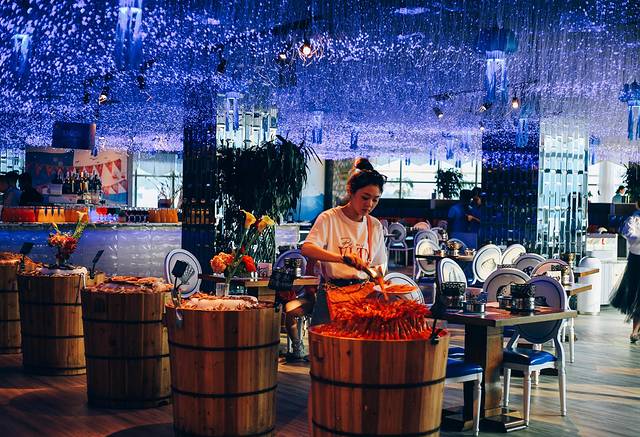 餐厅提供各种品类海鲜,螃蟹生蚝鲍鱼无限量供应,绝对的饕餮盛宴,让人吃得酣畅淋漓,彻底满足吃货味蕾的欲望。