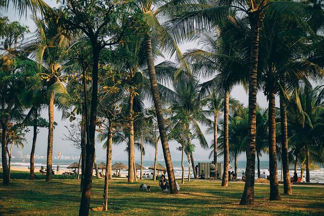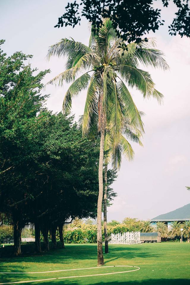 那些个太阳光,透过椰子树,透过一片片的树叶,照射进来,草地上光影斑驳,这是我最喜欢的模样。