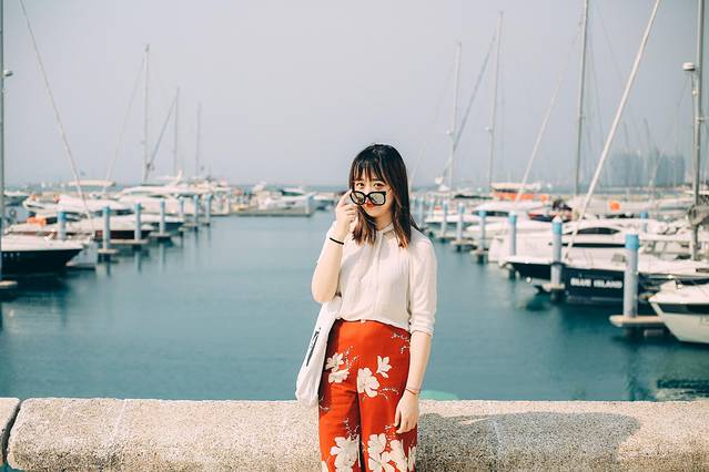 码头适合拍照,就算是正午的阳光也不害怕,阳光强烈,整个人倒是显得有点白到发光,这倒是意料之外的喜。