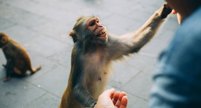 在这里会有人专门买一些花生给游客喂。这些猴子也是属于猴精猴精的,只要吃的不会伤人,所以大家也能放心大胆的给它们。