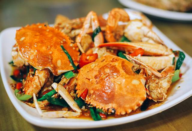 香辣蟹,林姐家的蟹是主打,口味非常好,所以有人会专门因为这里的蟹来吃一顿海鲜。一般来说,河蟹是吃黄,而海蟹则是品味它的鲜美和肉质。这样做法的蟹肉既入味又保留了肉质的鲜美,值得一试。