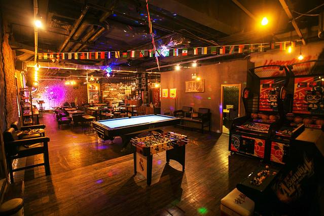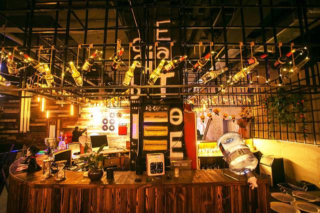 从黑眼圈的入口到精致的复古内饰,整体的轰趴氛围很舒适。一推门,就像进入了一家美式小酒吧,霓虹、复古、潮流、工业,处处都是细节,光和朋友坐着聊天喝酒听音乐就可以待一下午。