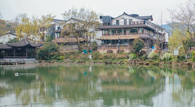 雪舫一侧,正灿烂着的垂丝海棠林是浴鹄湾的春色无边。姹紫嫣红,分外妖娆。有当地家庭在草坪上野餐,或坐在屋檐下闲坐。其实浴鹄湾的水系与西湖相通,却有着西湖没有的野趣与宁静。