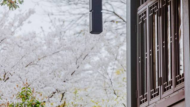 只拍樱花太单调?善于借用周围场景,会让画面更生动。可以是一角飞檐,一扇绮窗,甚至可以是沾染花瓣的手。