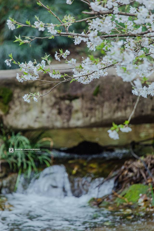 植物园里的山水园,几颗樱花树成了所有游客赏春的焦点。这些树看起来年岁已久,冠盖亭亭。无论是远观还是近商,这些樱花树已开始挥挥洒洒开始随风飘花,仿佛丽人的舞姿,令人心动神摇。在杭州见到的樱花树,大多是美丽的染井吉野品种,在街巷、居民楼前、公园里俱有栽植。白花缀满枝头,使人想起神社仪式上的日本新娘,冠服俨然,有一种庄严,而同时也确有几分“覆水不可回收”的意味。