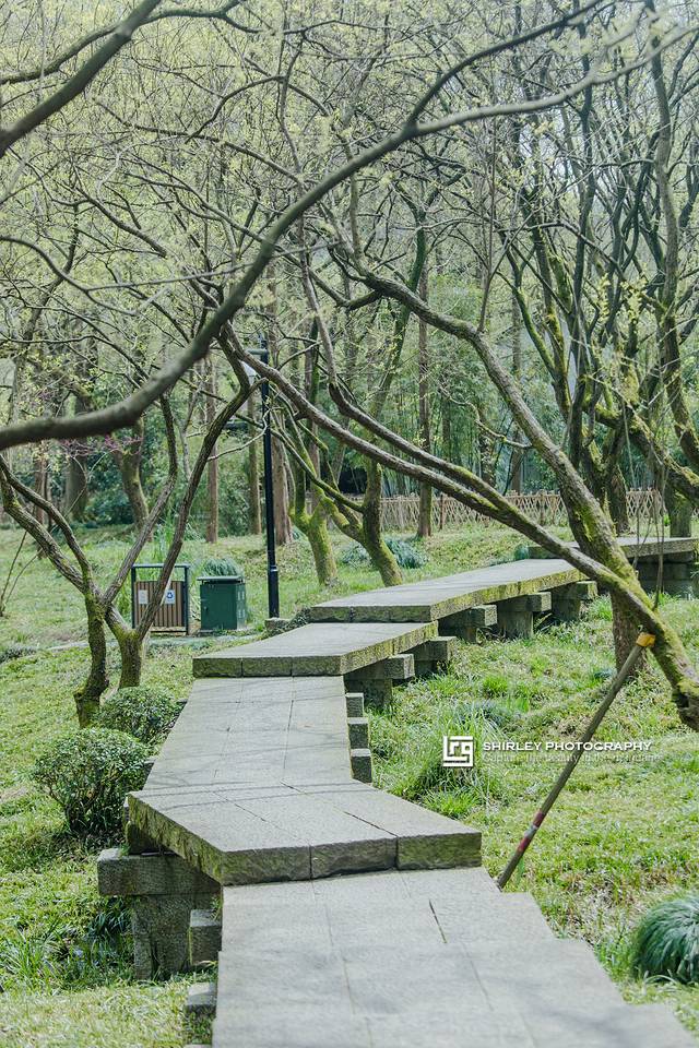 从浴鹄湾到杭州花圃大约2.2公里,很多公交经过。当然天气好的时候,我更愿意跟着地图徒步走过去,行走在春光无限的杨公堤也是一种享受。杭州花圃是久负盛名的花卉盆景赏胜地。前临西湖,后倚西山,环境清幽,游客特别少,只有当地人才会前来赏花、团建。给人曲径通幽,禅房花木深之感。有时候让人惊喜的,不是景色如何极致,而是闹中取静的那份小确幸。