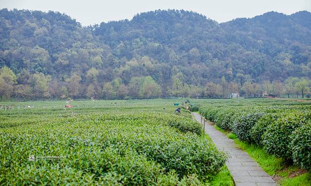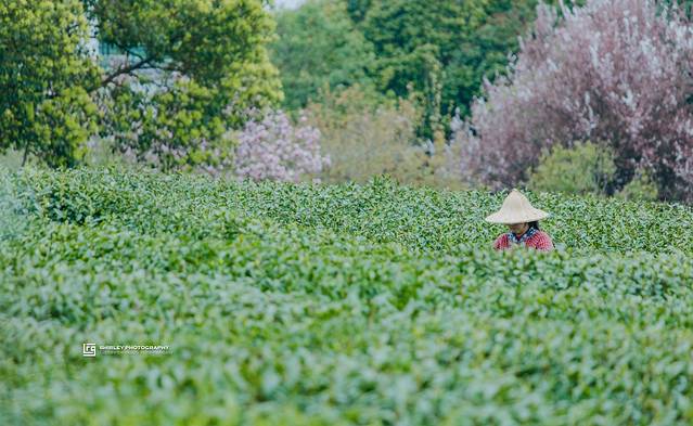 清明前后是龙井茶园里最忙碌的时候,只为采摘“一叶一臻品”的明前龙井。满目深浅不一的绿,就像是一片绿色的海洋。走在茶丛中,亦是享乐其中。陇间铺满了春来掉落的枯叶,踩上去,软绵绵的,簌簌作响。幽人采摘日当午,黄鸟流歌声正长,身与白云闲。