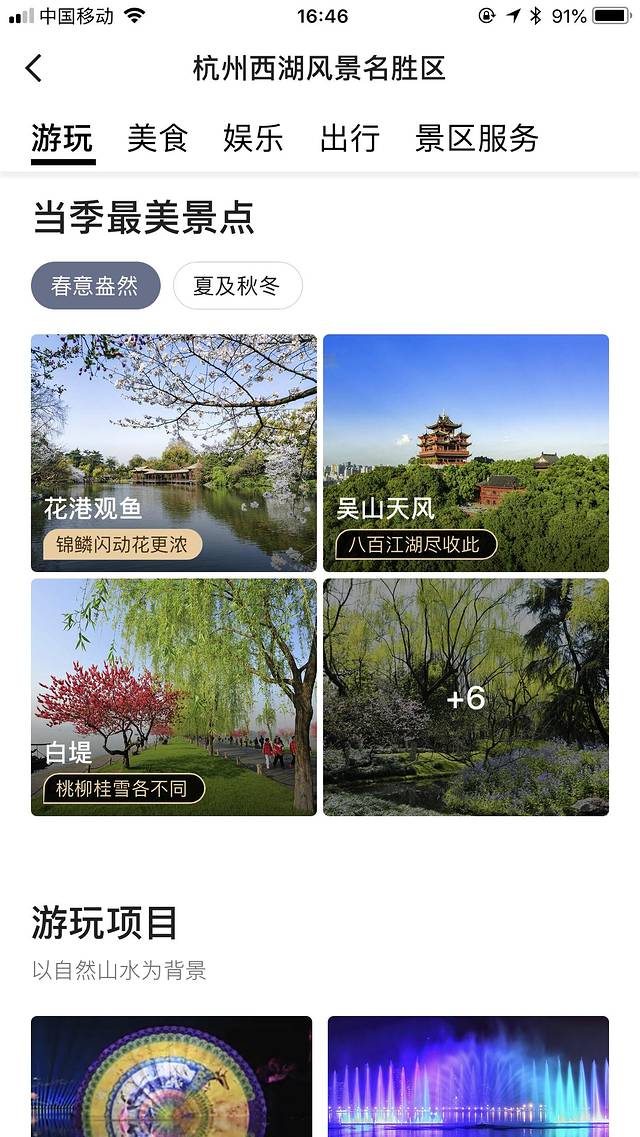 像我一样要去赏花春游的,地图里还特别顺应时节地推出了“当季最美景点”板块,“春意盎然”里面介绍的景点都是适合春天去的,虽然苏堤春晓、曲院风荷、花 港观鱼三个我都想去,但是看了地图以后,发现本次想去的地方都集中在杨公堤一带,就最终选择了花港观鱼。