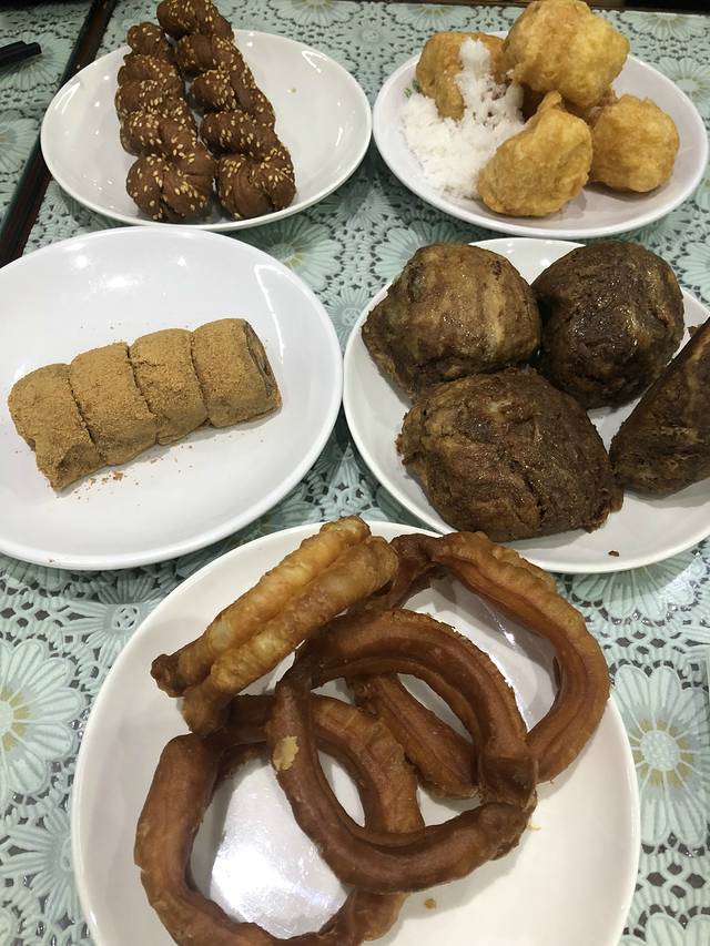 麻花、奶油炸糕、驴打滚、糖火烧、焦圈,如果我没记错应该是这几个名字。但是我记错的可能性也很高。