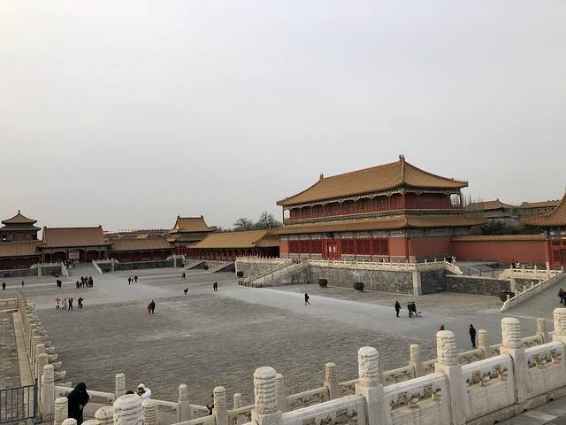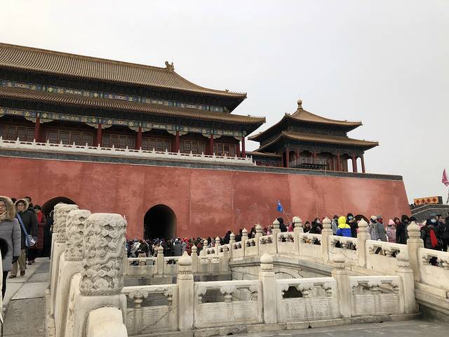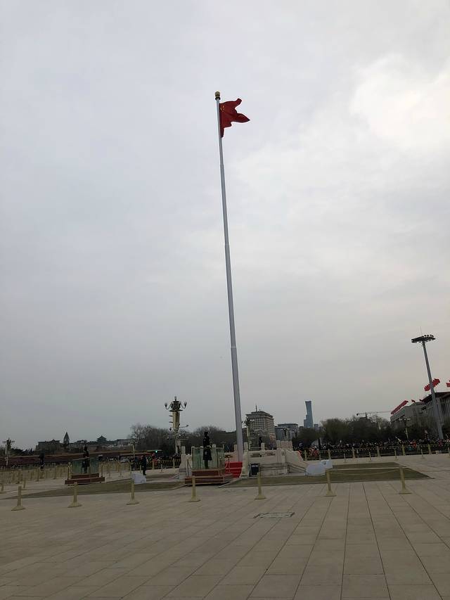 入住前跟酒店确定了冬季升旗仪式时间是早上7:20分。清晨五点,我们吃过早餐便步行前往天安门广场,赶在旅游团到达之前排队过了安检,到达国旗附近还不到六点,却也已经不是有利的地理位置了。泱泱大国果然是人头济济,所以即便我们瑟瑟发抖地在寒风中等了一个多小时,终究看不到近在咫尺的升旗仪式,只能听着国歌行注目礼,算是完成一个心愿。