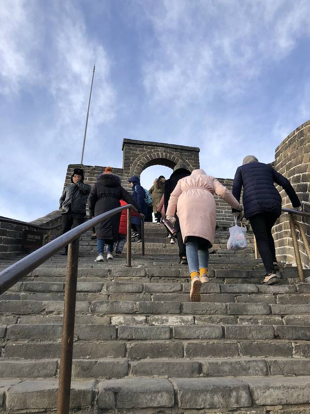 站得高不止看得远,还吹得冷。估计是因为雪在融化的缘故,长城这天是整个旅程中最冻成狗的一天。