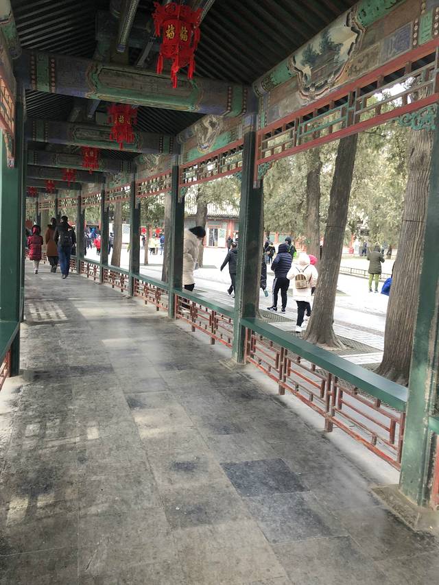 大过年的,要照一张人流量少点的照片真心是不容易的,这个长廊我也是瞄了许久按下镜头,马上后面就一拨人走上来了。