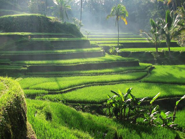 3.冲浪胜地-长谷是巴厘岛上一个多元化的小镇,有海岛应该有的一切元素,还有涂鸦,无尽的稻田、矮屋,随便一拍就是大片,在长谷,有绵延不绝的水稻田,在稻田之间还偶尔有椰子树点缀,你可以像茱莉亚罗伯茨一样骑着自行车穿越稻田,也可以骑着摩托车在公路上飞驰,感受一阵一阵的稻浪