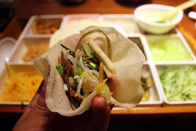然后便是关于丝娃娃的记忆。丝娃娃又叫素春卷,不过一般都是自助式的,从老板那里购买来春卷皮,然后接下来就是自由发挥时间,至于一张春卷皮到底能包多少菜进去,是一项十足的技术活,不管是曾经还是现在,吃丝娃娃总会有种和老板斗智斗勇的感觉。