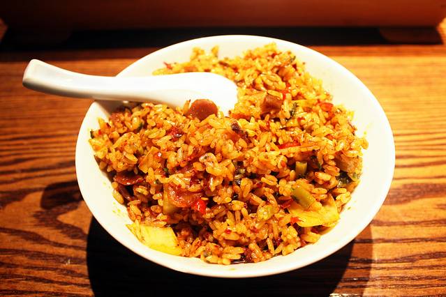 首先是脆哨饭。没有脆哨的贵州菜就像没有郫县豆瓣的回锅肉一样,是不具备灵魂的。所谓脆哨,就是用料酒、老生抽等各种调料炮制出来的具有香、咸、脆、爽特点的“哨子”。哨子分几种:有五花肉熬制出来的软哨,也有大肥肉被榨干制成的脆哨,还有精瘦肉熬制的“精哨”,也有稍带点肥肉熬制的“瘦肉哨子”,不管是哪种哨子,都是贵州菜的灵魂所在,猪油饭里撒上几粒脆哨,绝对是老贵阳最经典的吃法。