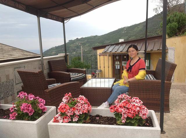 征得主人同意,我们在民宿留影。