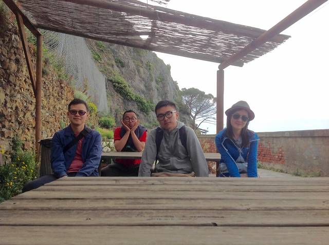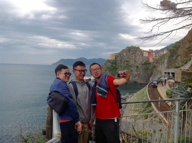从佛罗伦萨前往五渔村,有一段高速公路。但最后一个多小时全是盘山公路,坡陡弯急,一面是悬崖一面是大海。洒导技术好,前车带路,丹导是第一次开这样的山路,不得不说真心不错,胆大心细,一路谨慎驾驶。我们先到的一个村子因没有停车位了,就直接到了比较有名的里奥马焦雷村。由于我们的时间紧,五渔村是我们的一个路过景点,所以就逛了这一个村子。在半山坡找到一处收费停车场,我们徒步到山下海边的村子。