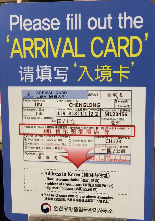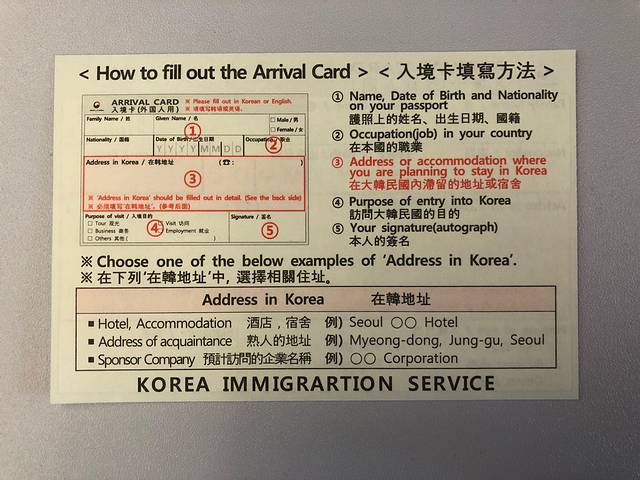 韩国 入境卡,有中文,没压力,看着填就好了,没难度。