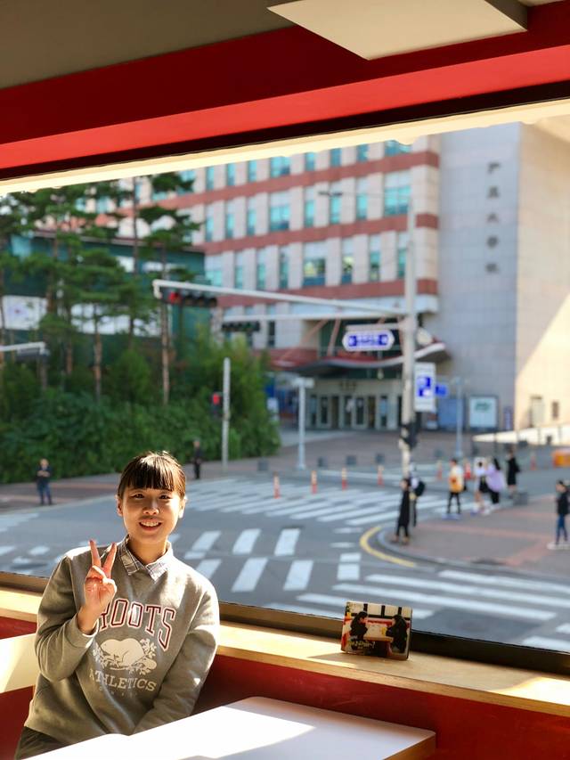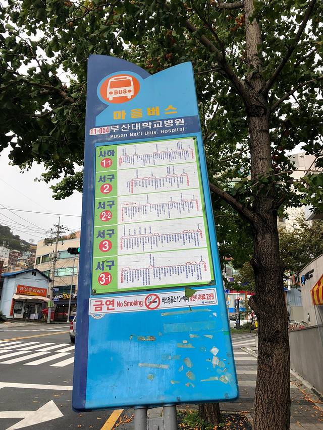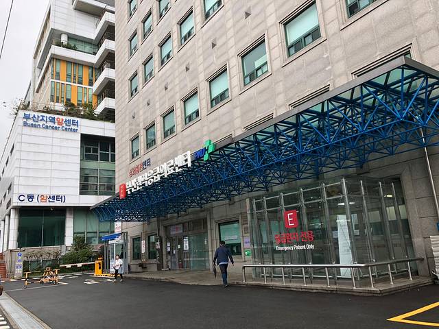 出来沿着直走转右会看到Busan Cancer Hospital. 巴士站就在医院面门口右手边。