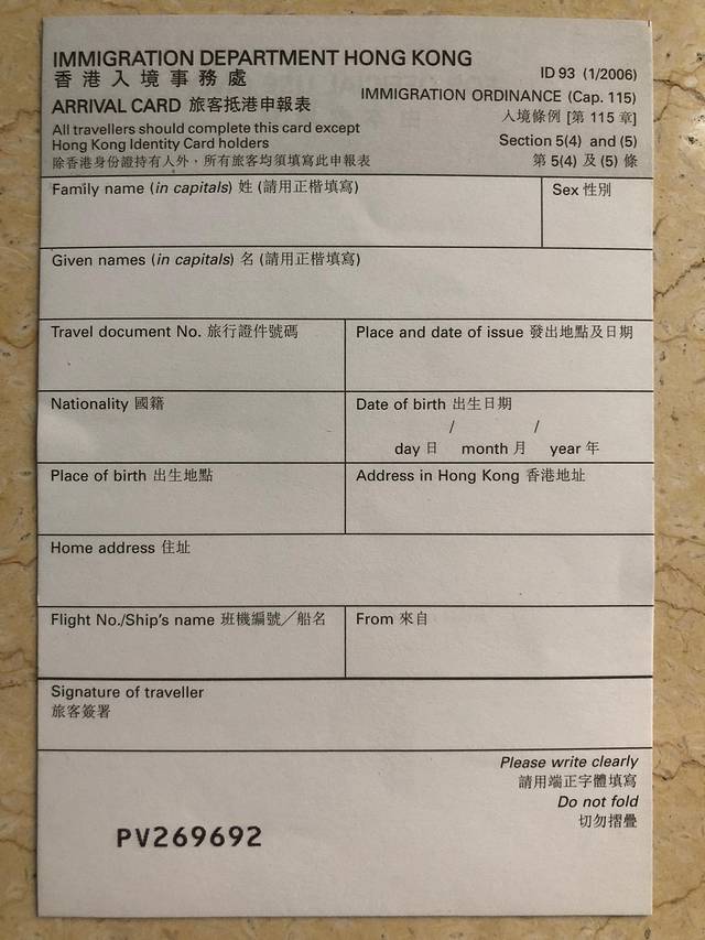 入境卡,我首先说的不是, 韩国 入境卡。而是, 香港 入境卡。