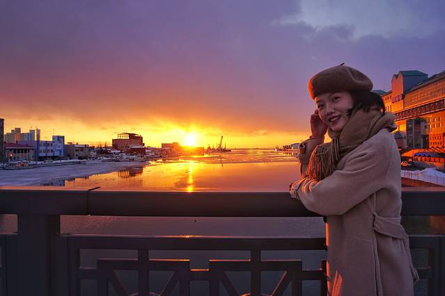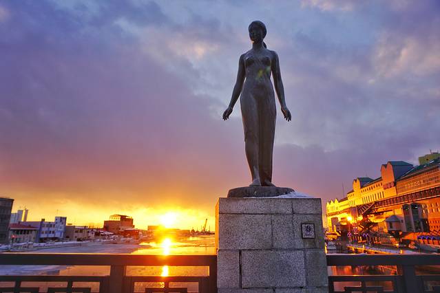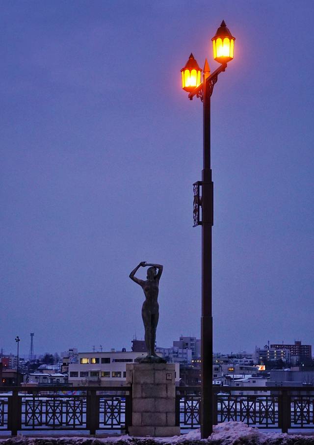 都说币舞桥上的落日是日本最美的日落景色之一,每当夕阳西下,币舞桥上代表春、夏、秋、冬的四座少女雕像就形成了美丽的剪影,令这座遥远的极冬城市也充满了浓郁的诗意。↓