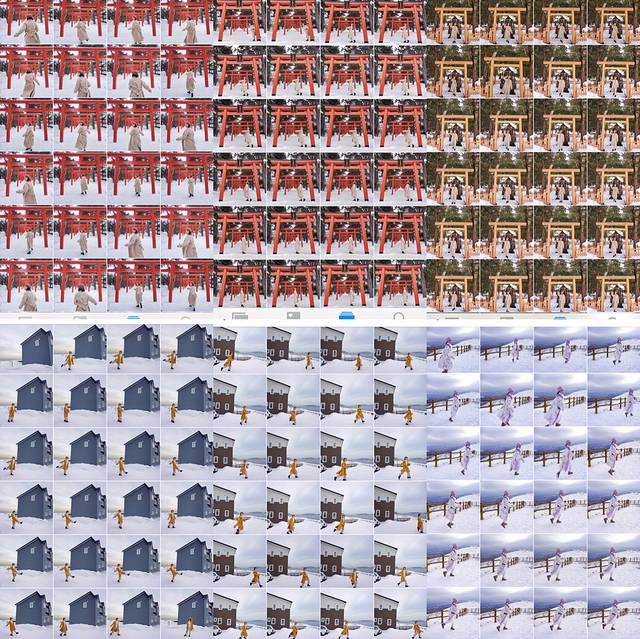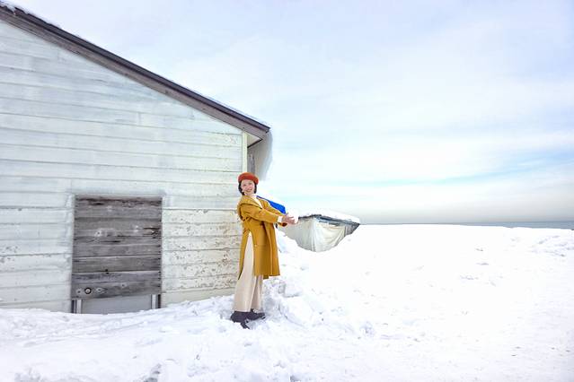 八幡坂的路面以石块铺就而成,笔直通向大海,周围的街区林立着教会和西式洋房,满是优雅闲适的欧式风情。站在八幡坂高处远眺,可以看到道路尽头连着蔚蓝色的大海,还能望到海对岸绵延的山。可惜几张照片的功夫,天色突然阴沉下来,紧接着雪越下越密,海天混为一色,再不复刚才晴空万里的景致,旅行就是在这样充满了变数,为了避雪,我们只得匆匆拍好人像后提前结束元町漫步之旅,前往可以在室内闲逛的金森仓库群。↓