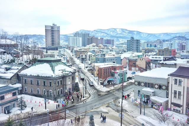小樽市位于札幌市西北,与札幌市相邻接,因为地缘的关系也可以视为札幌市的卫星城。从札幌站出发乘坐JR列车,约半小时即可到达,交通十分便利。因小樽毗邻日本海,从札幌至小樽的铁路沿途有一部分路段会沿海而行,乘坐JR列车前往的时候建议坐在车厢左侧,会看到非常壮美的海景;整座城市依山傍海,建筑大都沿山势而建,因而小樽与海岸平行的东西走向较为狭长,南北狭窄,从地势较高的小樽站出来,向正前方眺望即可看到海边,城市也因此而形成了一条条南北走向的坡状街道,即日语中的“坂道”。
