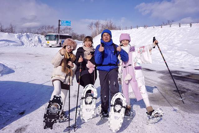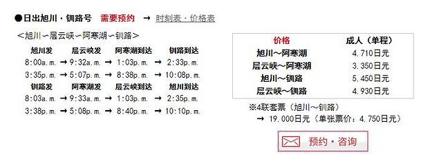 今日我们报的是阿寒巴士冬季限定的白色PIRIKA号道东三湖一日游,从钏路市区出发,途经鹤见台、摩周湖第一展望台、砂汤、硫磺山、阿寒湖。如果你同我们一样住在阿寒湖,那么可以选择在阿寒湖下车,只是打算在阿寒湖泡一个日归温泉的游客,也可以在游览完阿寒湖景区后继续上车返回钏路市区。每年冬季的发车日期不是固定的,具体以网页信息为准http://www.uu-beihaidao.cn/corporate/akanbus.shtml,网页上用中文详细地介绍了线路停靠、景点推荐以及价格区间,并提供了线上预约渠道,只需输入参与者信息,并选择上车站点,就可以在到达钏路后在上车站点处服务台付钱领取车票(如我们选择在钏路王子酒店站上车,只需在办理入住时告知酒店服务人员预约者姓名,付款即可换取车票)。除了道东三湖一日游这一经典线路外,如果你对丹顶鹤尤为痴迷,还可以选择搭乘“冬季的丹顶号”深入领略丹顶鹤的魅力。