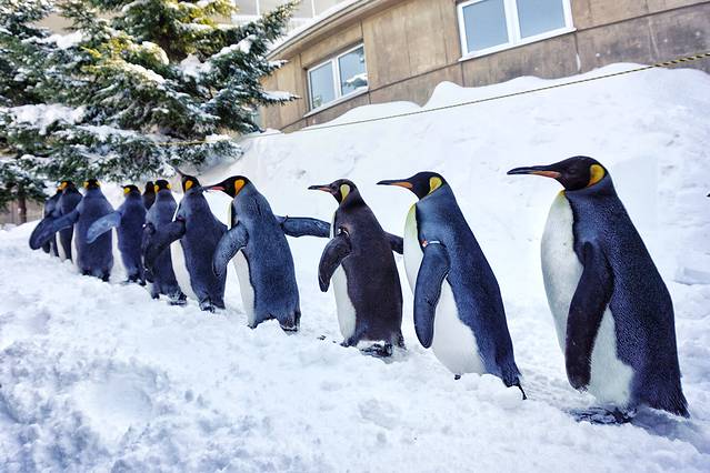 这是日本最北端的动物园,同时也是日本规模最大的极地动物园,现在已成为全日本参观人数最多的动物园。园内以独树一帜的动物行为展示方式而闻名,通过展厅的独特设计,让动物在相对自由的饲养状态下展示自己本能行为的同时,还能让游客无障碍地观看到动物的自然状态,特别是隔着玻璃水槽欣赏北极熊、海豹和河马的泳姿,以及冬天企鹅的户外雪地散步。每年冬天动物园会推出企鹅大游行的特色活动,游客每天有两次机会跟随在萌萌的企鹅队伍身后四处行走。