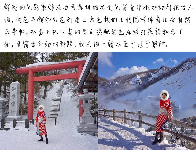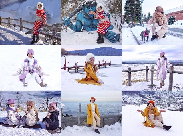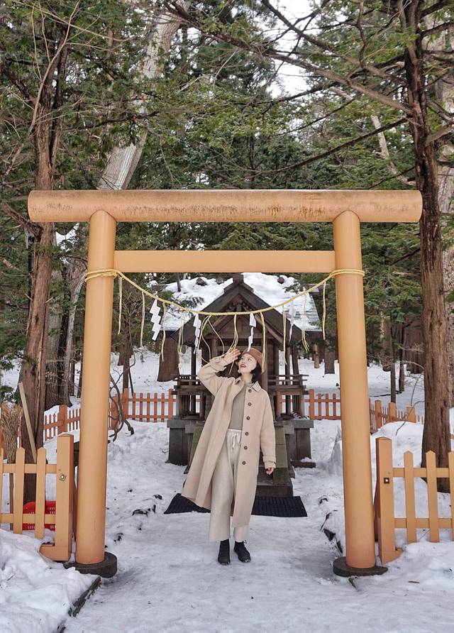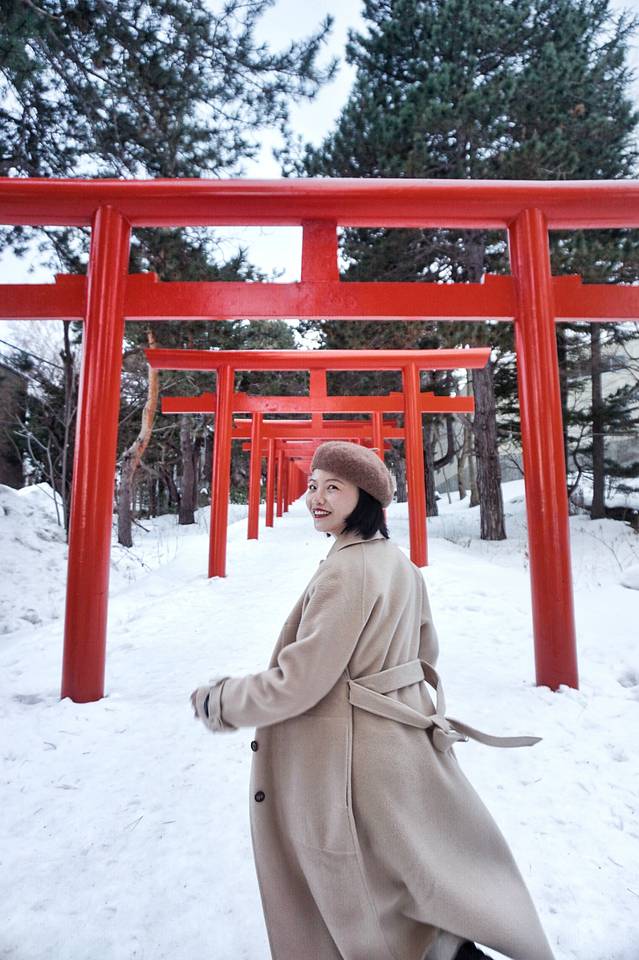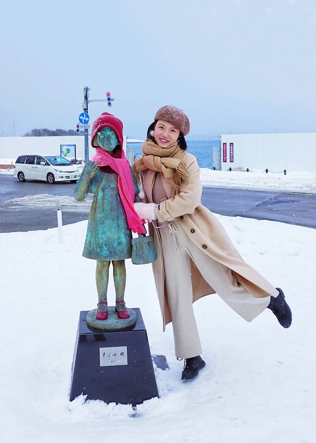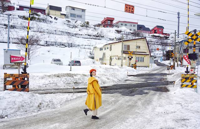 雪势减小,我的咖色贝雷帽上覆盖着薄薄一层雪花,像洒了糖霜的巧克力面包。路上大大小小的雕像都戴上了帽子、围巾,不论是时令节气还是四季风物,一切事物在日本都被认真对待,生命的美感就这样安静地流露出来。↓