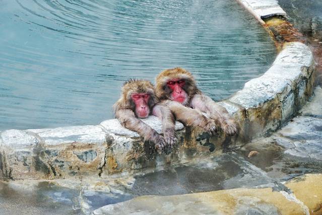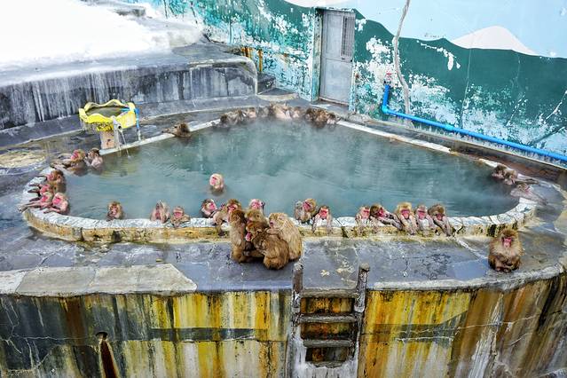 5.谁不想成为冬雪里泡温泉的猴子呢?