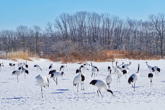 本日的第一站是鹤见台,正如行程导览中介绍的那样,鹤见台有着如同偶像剧那样因爱生恨最终冤家变爱人的故事情景,只是主角换成了口嫌体正直、一边嫌弃一边不离不弃的TOME女士和看似不食人间烟火其实最爱吃TOME女士家玉米粒的丹顶鹤家族。剧情是这样的:TOME女士是个固执的老人,起先与鹤为敌,因为讨厌的野鹤飞来她的农田过冬,啃噬她的庄稼,她驱赶过,恼怒过……后来,国家开始保护这类珍贵的野生动物,把她的农田承包下来,为她安顿了其他生活的场所,可她却愿意留下来,照看这群来自西伯利亚的老伙计,一年又一年。如今这部“偶像剧”已经拍到了第二部,喂鹤的主角变成了TOME女士的儿子,不变的,是那颗始终对万物苍生怀有爱意的心吧!↓