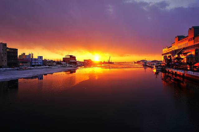 小樽运河与其周边的海运仓库遗址是小樽市乃至整个北海道的地标之一,开通于1923年,是北海道最早的一条运河。曾经的用来装卸货物的小樽运河见证了“北方华尔街”的繁盛,也曾一度沉寂,面临被填埋的危机。1986年,随着小樽运河沿岸道路铺设工程的开始,小樽运河畔铺设了步行街和欧式复古造型的煤气灯,结合沿岸八十年以上历史的砖石结构仓库建筑群,小樽运河得以成长为北海道的观光胜地,直至今日,已经是象征浪漫和见证爱情的胜地,因电影《情书》而闻名,四季景色各不相同,尤其以冬季最为别致。