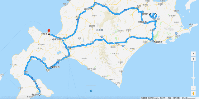 登别仙境酒店—(步行)—登别温泉中央站—(巴士)—JR登别站—(高铁)—JR函馆站—(走路)—帕科函馆酒店—(电车)—函馆山—(电车)—帕科函馆酒店