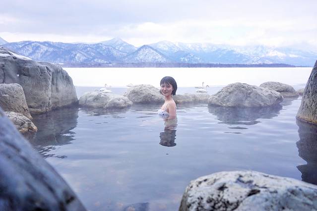 屈斜路湖边上的一处野外温泉,因为屈斜路湖冬季结冰,但这附近有温泉水出,所以湖面特别温暖,吸引了很多天鹅来此过冬。在这里泡汤可以近距离观赏大天鹅。