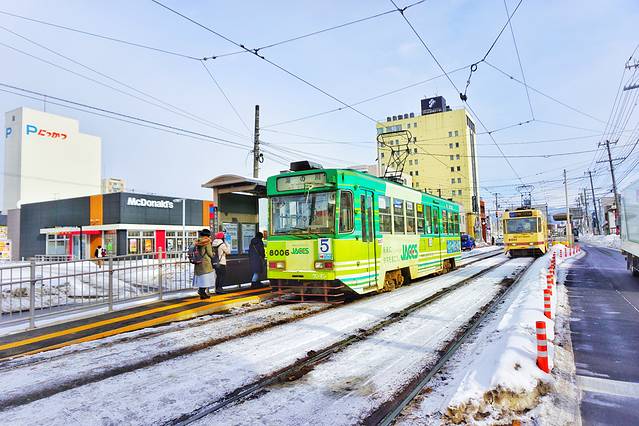 函馆是现在日本少数几个保存有轨电车的城市之一。当地的有轨电车诞生于1913年,百年之后的今天依然叮叮当当地行驶在日本北海道函馆街头。