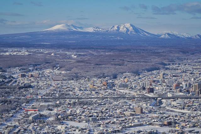 旭川市是面积和人口仅次于札幌市的北海道第二大城市,地处北海道的腹地,是连接北海道中南部的札幌,北海道南部的函馆,通往北海道东部(道东地区)和北海道北部(道北地区)的重要交通中转站,公路和铁路发达。无论是前往道东地区的北见、网走,还是道北的稚内、名寄,或是来到接近北海道中部的富良野和美瑛,旭川都是一个经停的中转枢纽。旭川市位于北海道的内陆地区,冬夏温差较大,是北海道最为寒冷的地区之一,曾经在1902年记录到了-41℃的低温极值,是日本的“寒极”。因为这个低温纪录,旭川的甜点商还推出了一款以-41℃命名的“冰点下41度”巧克力甜点,一时风靡整个北海道。