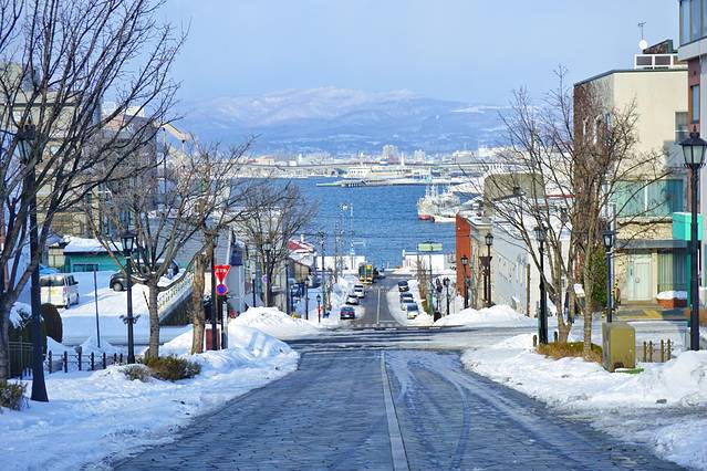 船见坂是深藏在小樽市一隅的坡道,也是电影《情书》的取景地之一。这里不仅远离喧嚣的游客,站在地势高处还能眺望远方漂亮的海面,犹如电影中的唯美场景。电影《情书》中有一幕,在悦耳的引擎声中,邮递员骑着电单车上斜坡送信,该斜坡正是船见坂。由于《情书》的名气,如今这里也成为了不少电视广告的取景地点。抛开电影的影响,这条坡道本身的风景也很不错,不仅可以拍到列车经过的铁道,在雪后的晴天还能拍出屋顶堆雪的街景。