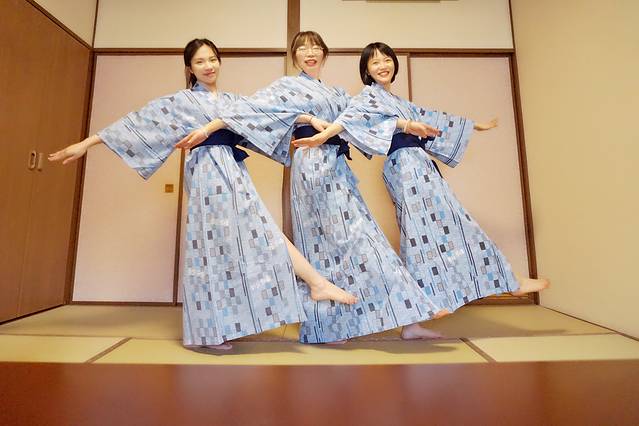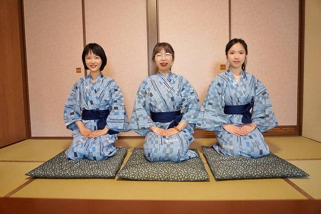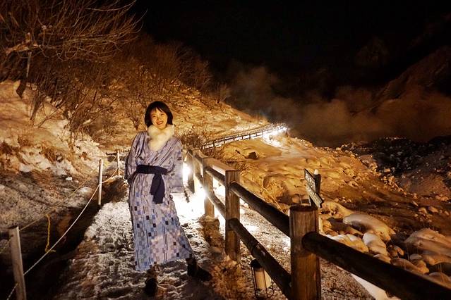 今日的重头戏是泡温泉,回到酒店办理入住之后,趁着晚餐还未开始,我们郑重其事地洗漱更衣,换上酒店提供的浴衣,迈着日本和服女子特有的娇柔小碎步前往酒店温泉进行此次旅程的温泉“首泡”。↓