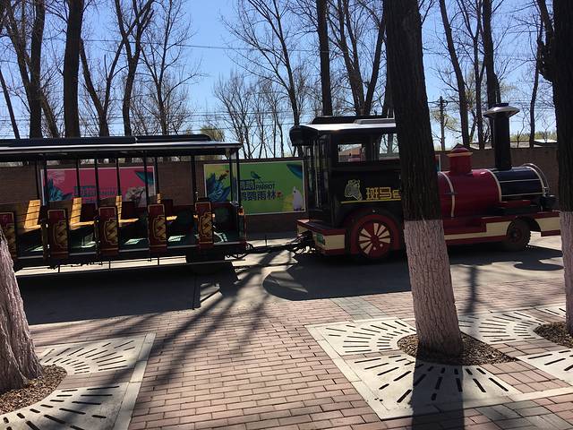 大概就是这样在附近逛了两个小时吧,终于坐上了小火车,在网上看到的攻略是往左边坐,这样看见的动物会多一些,本来我们位置挺靠前的,以为可以自己选择坐在哪里,等到进去后你会发现,不是你想怎么坐就怎么坐的,都要统一听从工作人员的安排!我们被安排到了靠右的位置,好在左边的两个小叔叔很大度的和我们换了位置,说让小朋友多看看!