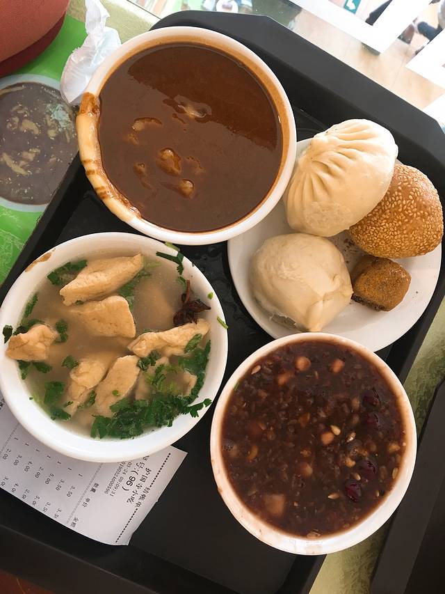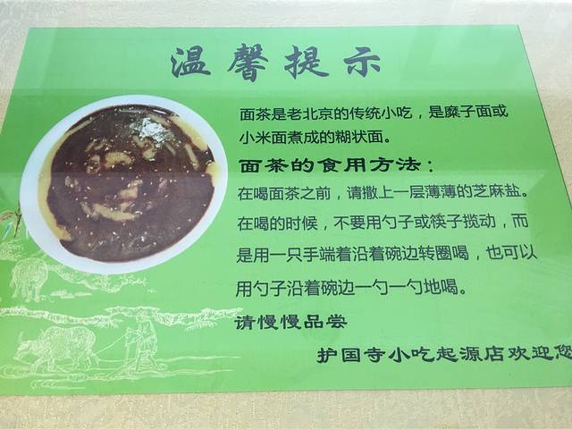 喝面茶很有讲究,不能搅,要溜着边满满品,飞哥给我滔滔不绝的讲了半天,我本来都有些崇拜了,怎么你什么都懂,结果人家告诉我桌子上有提示,怎么喝👇🥴🥴🥴