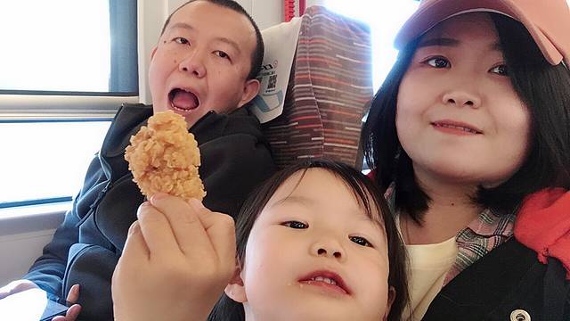 可乐在幼儿园睡完午觉就被我们接出来直接去火车站,定的四点10分的火车,去北京的城际列车车票还是很好买的,几乎每隔十几分钟就会有一趟,但我还是习惯了提前在网上订票。坐公交车到火车站后感觉时间有点不富裕了还稍微紧张了一小会,然而万万没想到的事情又发生了,列车居然晚点了70分钟😱😱😱😱!我们就这样在火车站傻傻的等了一个多小时,期间可乐还说饿了,在候车大厅的肯德基里买了冰淇淋和鸡翅才稳定住了小朋友的情绪,真的,70分钟我等的情绪都不好了!😡😡