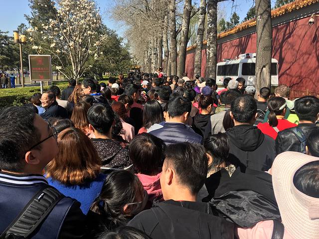 进故宫要安检,这是刚下地铁就开始排队安检的情况,根本连安检口我都看不到!