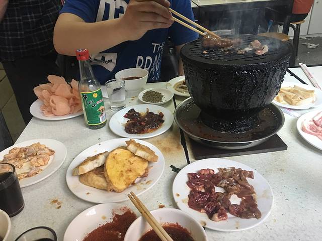 出了故宫是三点多钟,中午我们也没有吃饭,索性直接去附近的大槐树烤肉吧,还是我师父推荐的,大众点评上了解了一下也是必吃之一啊。离故宫大概三站地的距离,决定走过去,因为等公交还是打车感觉都很费劲,因为从故宫出来的人也是超级多。我们一边聊天一边走,也没多久就到了。结果又是一个万万没想到,居然这个点去吃饭需要排队,不愧是我师父推荐的,火爆程度真的可想而知。等了大概半个小时,我们吃上了这个传说中烤肉。
