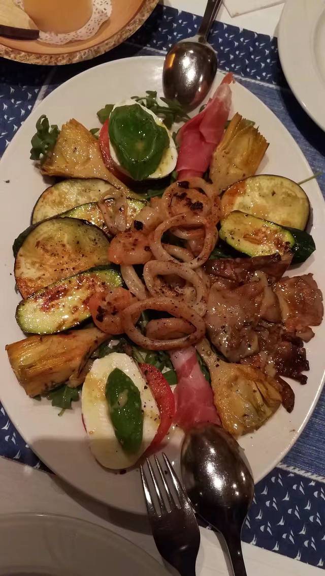 一路奔波劳累,一天除了早餐,中午随便一点零食垫肚,入住后已经快九点,饿得快撑不住了。客栈主人告诉我们小村唯一在这个点还在营业的饭店,急忙赶过去点餐。进德国后的第一餐没有亏待我们,虽然快打烊了,但看在我们是来自遥远东方的客人的份上,老板娘还是给我们准备了丰盛的晚餐。