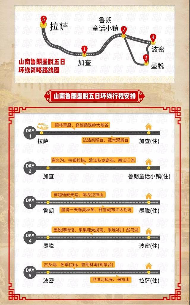 今日亮点:崔久沟 、拉姆拉措 、雅江臥龙奇石 、两江汇流 、鲁朗童话小镇
