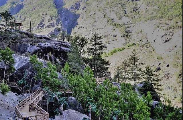 藏在深山里的明珠崔久沟,是山南地区雅江北岸八大风景秀丽的沟谷之一,也是前往拉姆纳错神湖朝圣旅游的重要通道。沟两边高山耸峙,森林茂密,层峦叠嶂。河水也失去了先前的温驯,时而恣意放纵,时而咆哮奔流,飞流瀑布更是随处可见,浪花飞溅也是寻常之物。遇到较宽阔的地段时又回复平静,缓缓地流淌着。